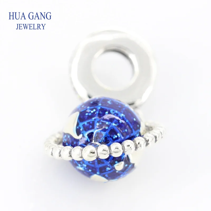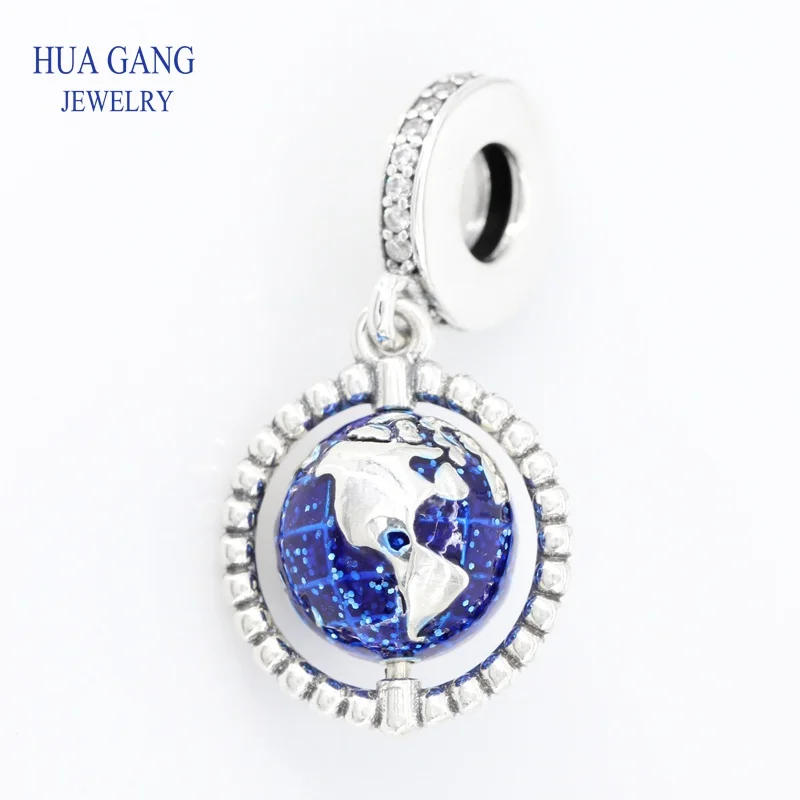 100% 925 Sterling Silver Spinning Globe Dangle Charm Beads Fits Women Charms Bracelet DIY Jewelry W