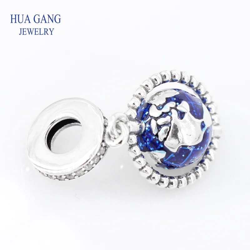 BEST 100% 925 Sterling Silver Spinning Globe Dangle Charm Beads Fits Women Charms Bracelet DIY Jewelry W