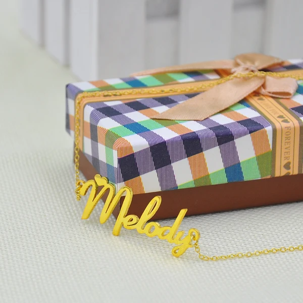 Best Customized Name Necklace Golden Pretty Heart Girl Nameplate Pendent Solid Jewelry Collar