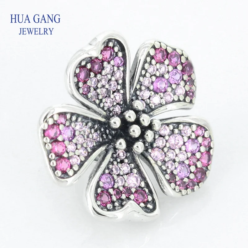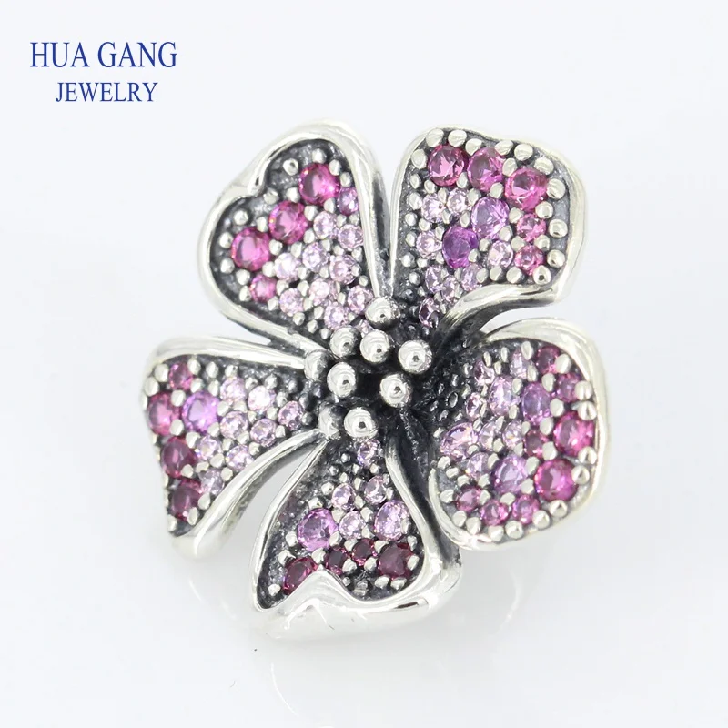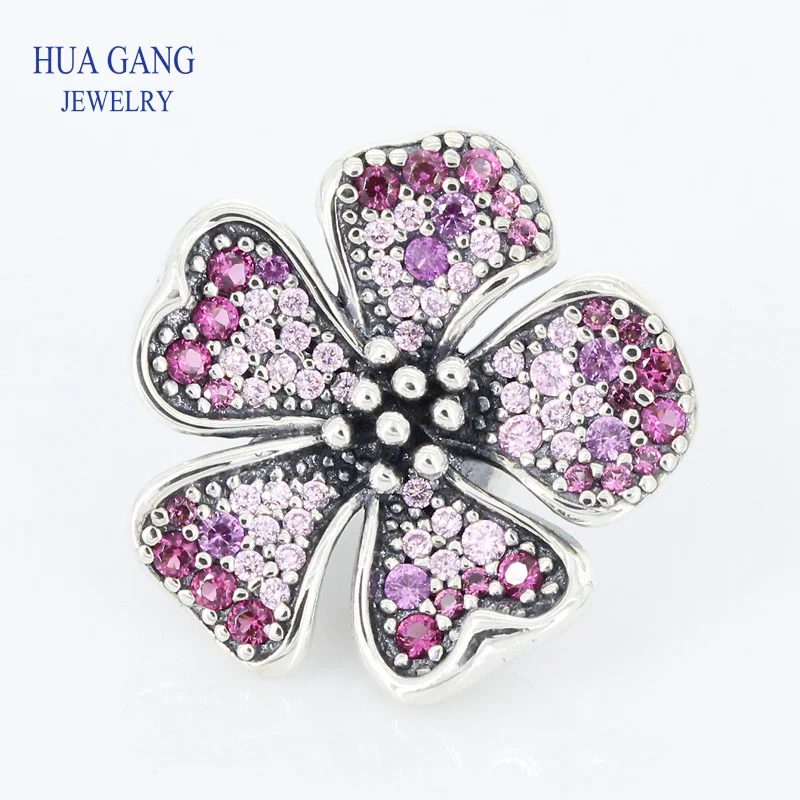 High Quality 925 Sterling Silver 1: 1 Beaded Long Peach Flower Series Charm Suitable for Pandor Bra