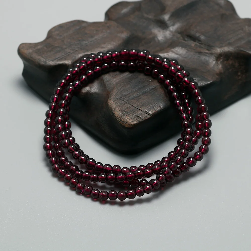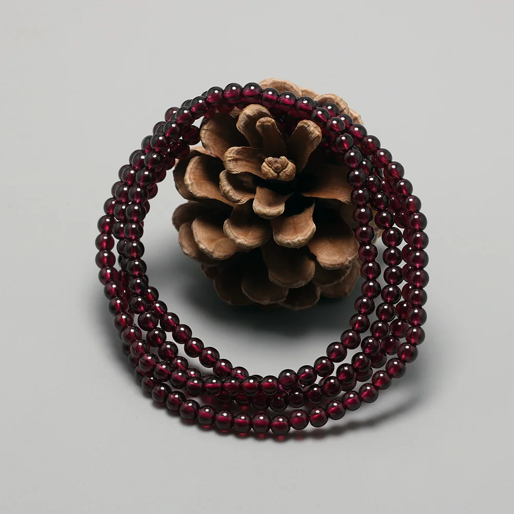 4mm Small Wine Red Natural Garnet Bracelet Multilayers For Women Bead Charm Bracelet Yoga Jewelry B