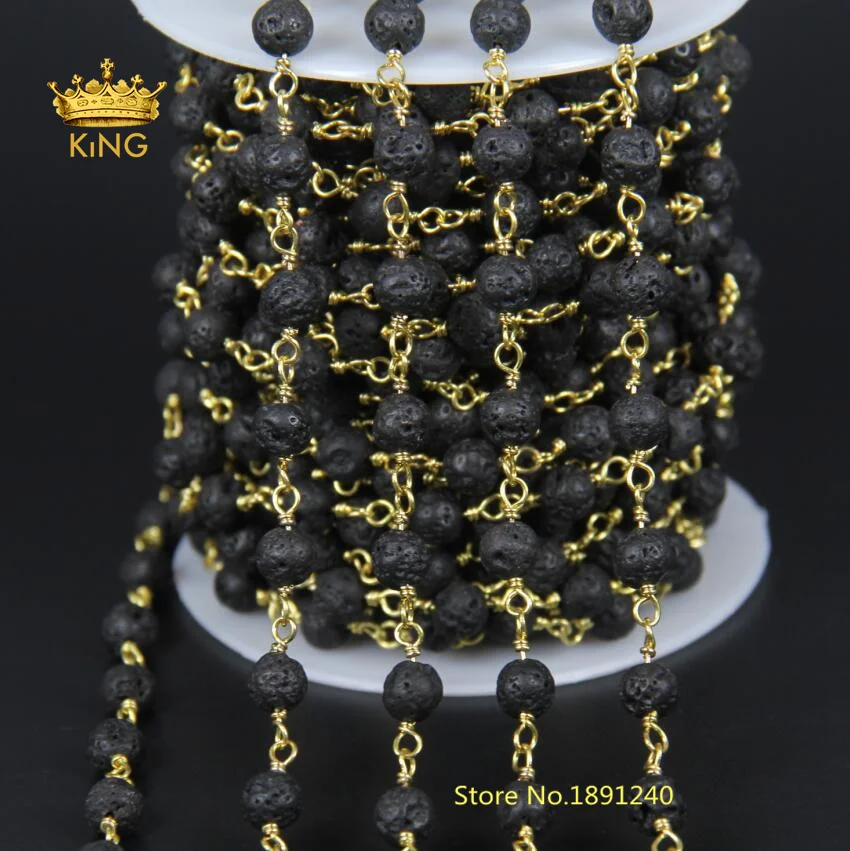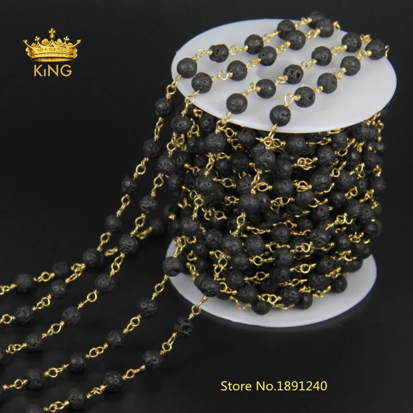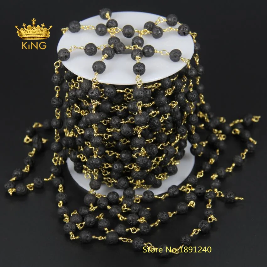 BEST QUALITY Wholesale 5M Fashion Wire Wrapped Rosary Gold ChainBlack Lava Round Beaded Chain Necklace Bracelet