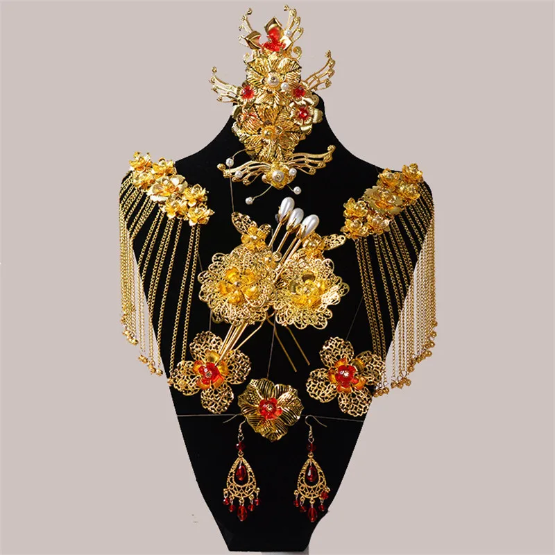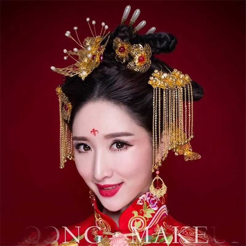 HIGH QUALITY AINILIDAN Chinese Style Red Crystal Bridal Jewelry Sets Headdress Hair Accessories Imitation Pearl