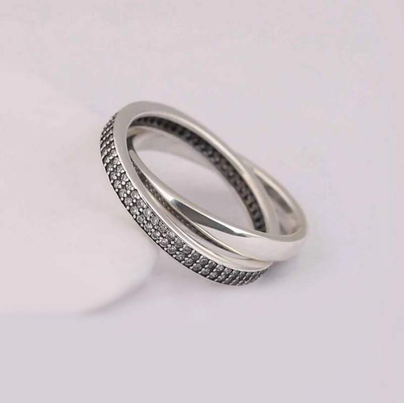 ORIGINAL Top Quality Popular Classic Logo CZ Paving 925 Sterling Silver Double Circle Ring silver 925 jewelr