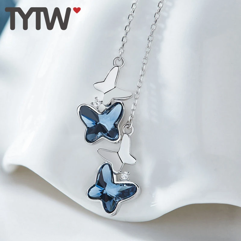 TYTW Chic women stud earring S925 Silver Crystals form Austrian Blue Fashion for Women Butterfly pe