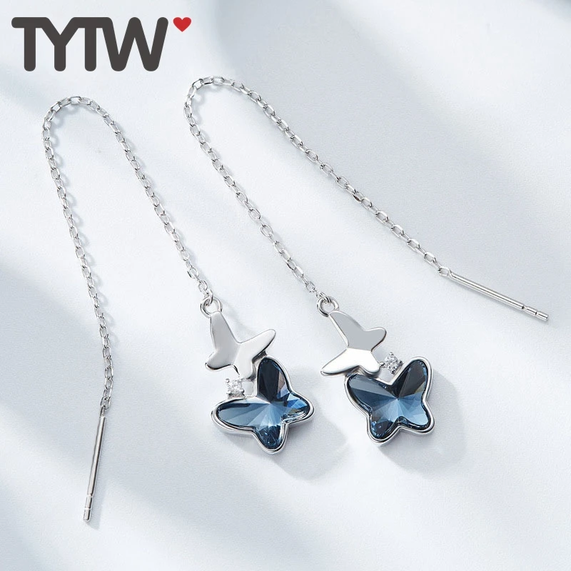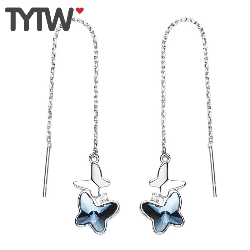 TOP TYTW Chic women stud earring S925 Silver Crystals form Austrian Blue Fashion for Women Butterfly pe