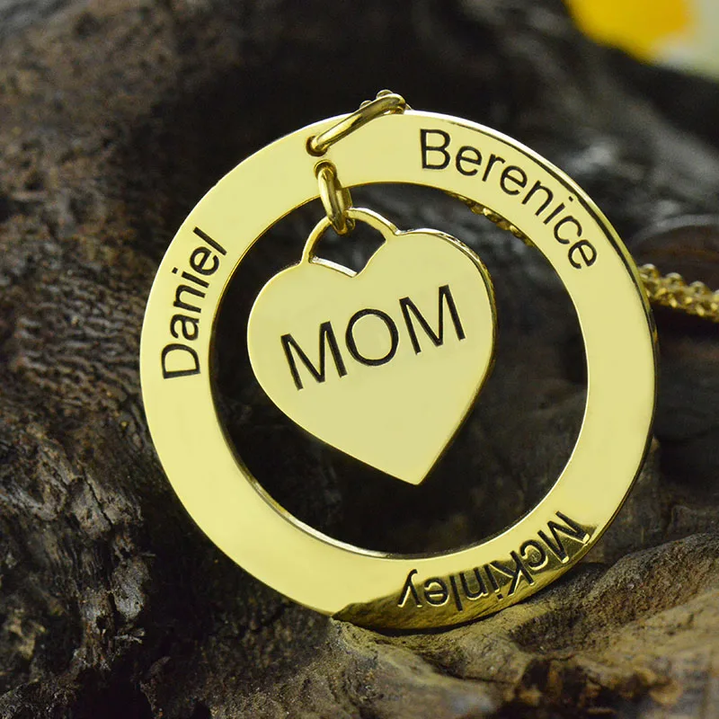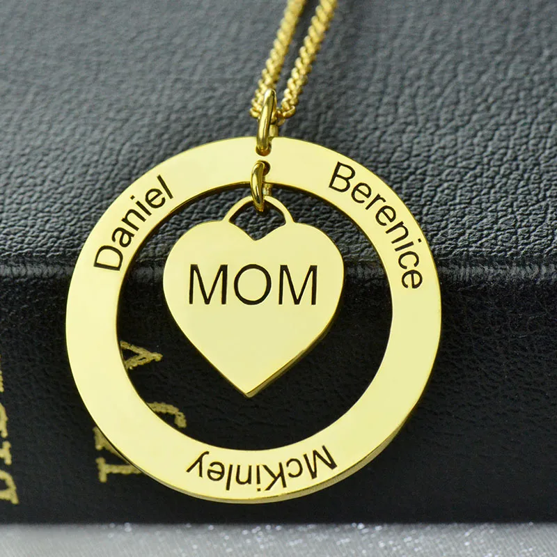 Best Wholesale Moms Heart Necklace with Kids Names Gold Color Circle Heart Family Necklace Love Between
