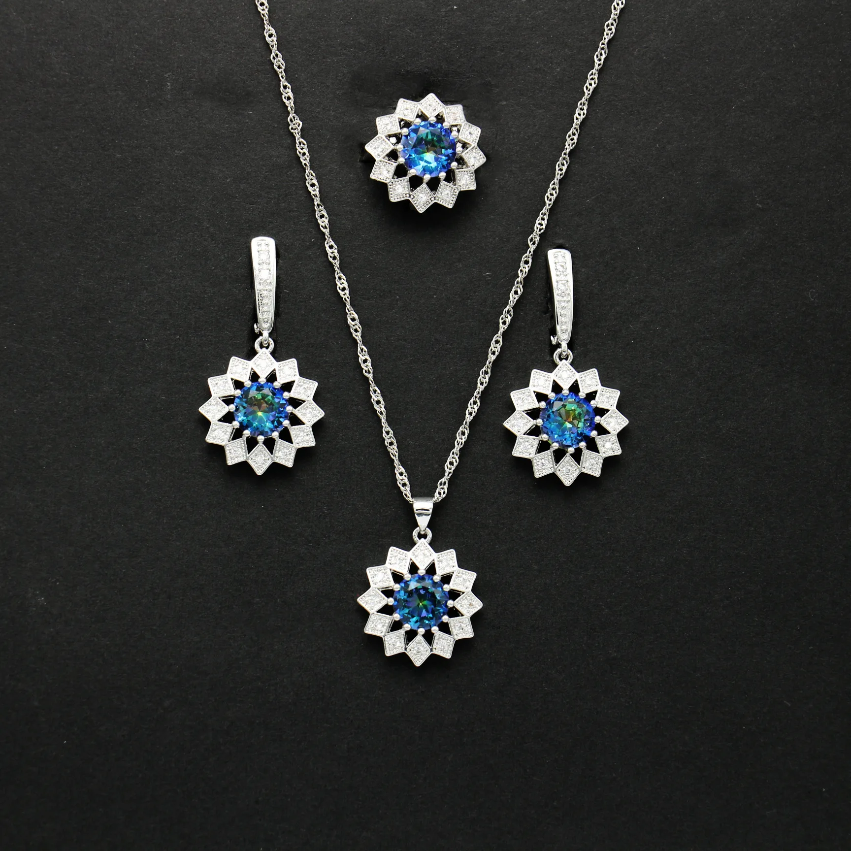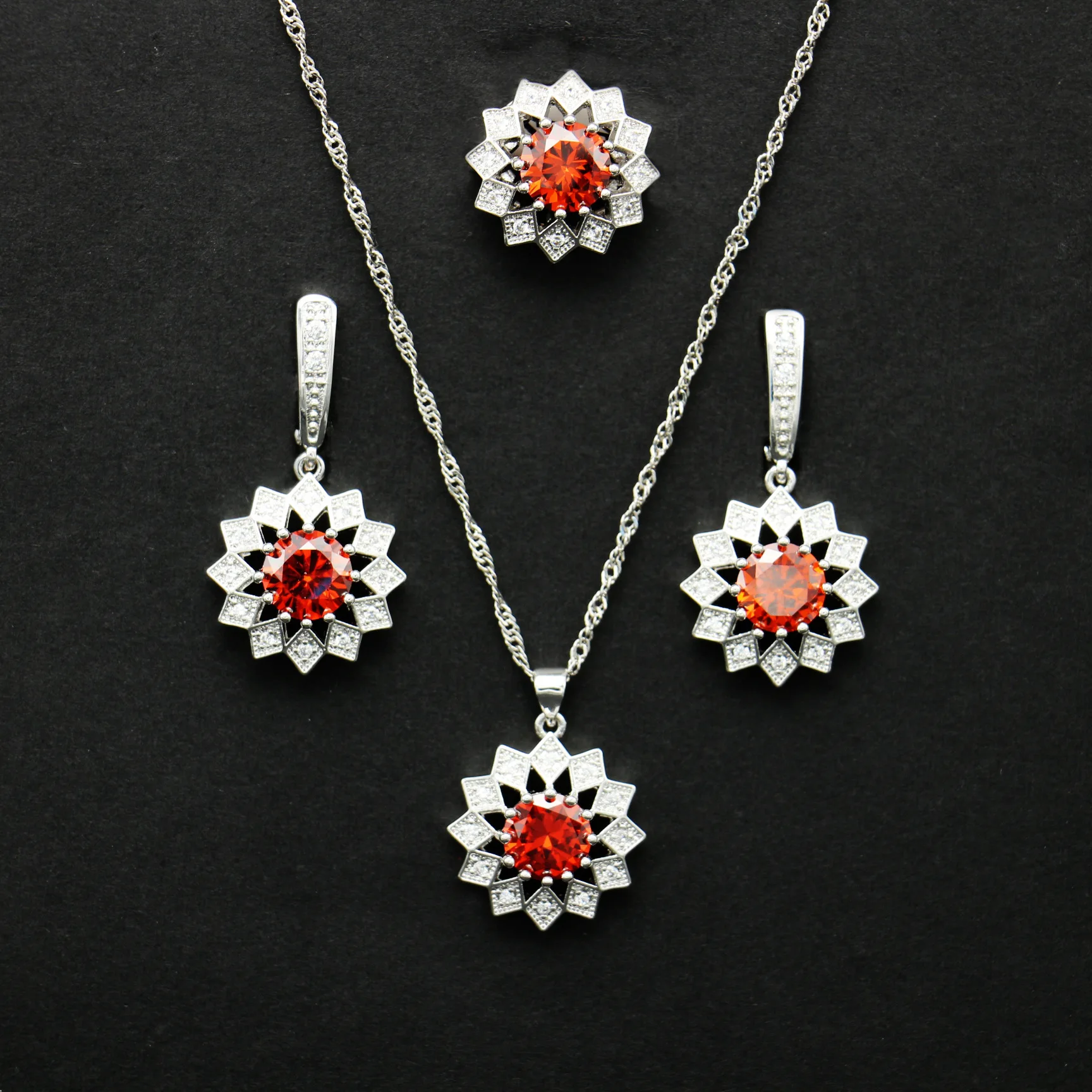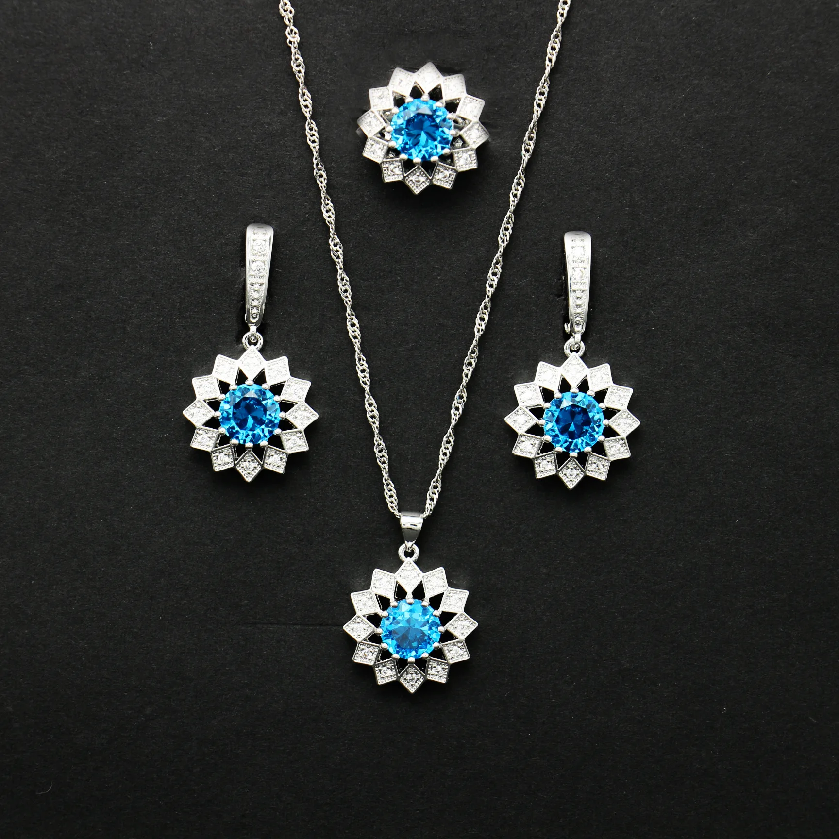 Hot Sale Zircon Sun Flower 925 Sterling Silver For Women Jewelry Sets Necklace Pendant Earrings Ring