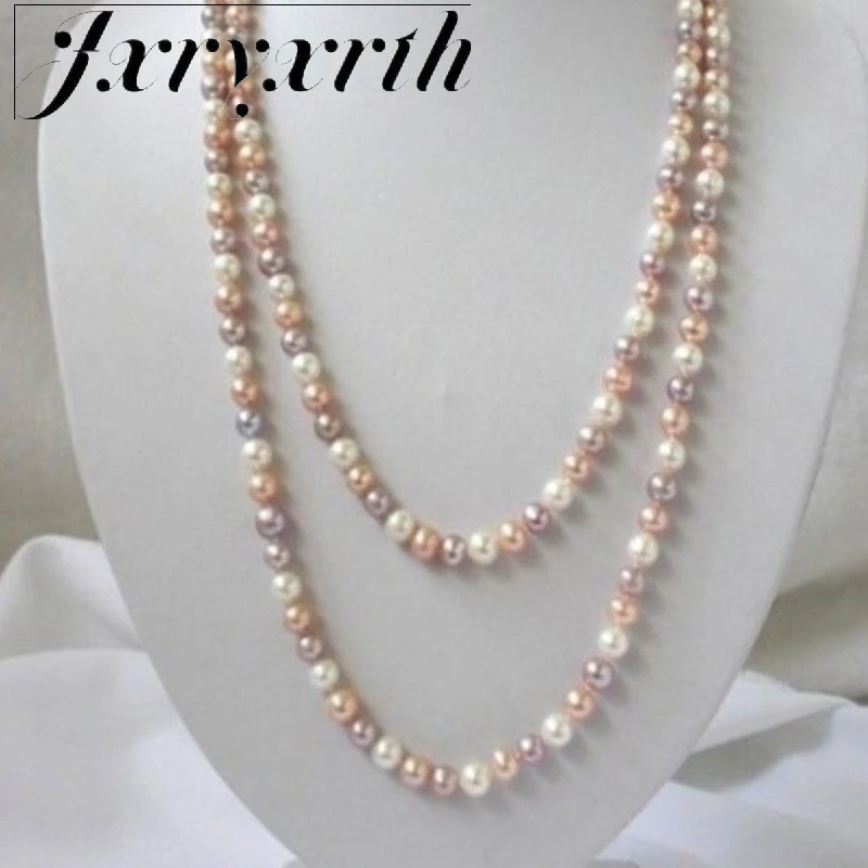 2018new Discounts!7-8mm Multicolor pearl long necklace 50 inch DIY women jewelry making design fash