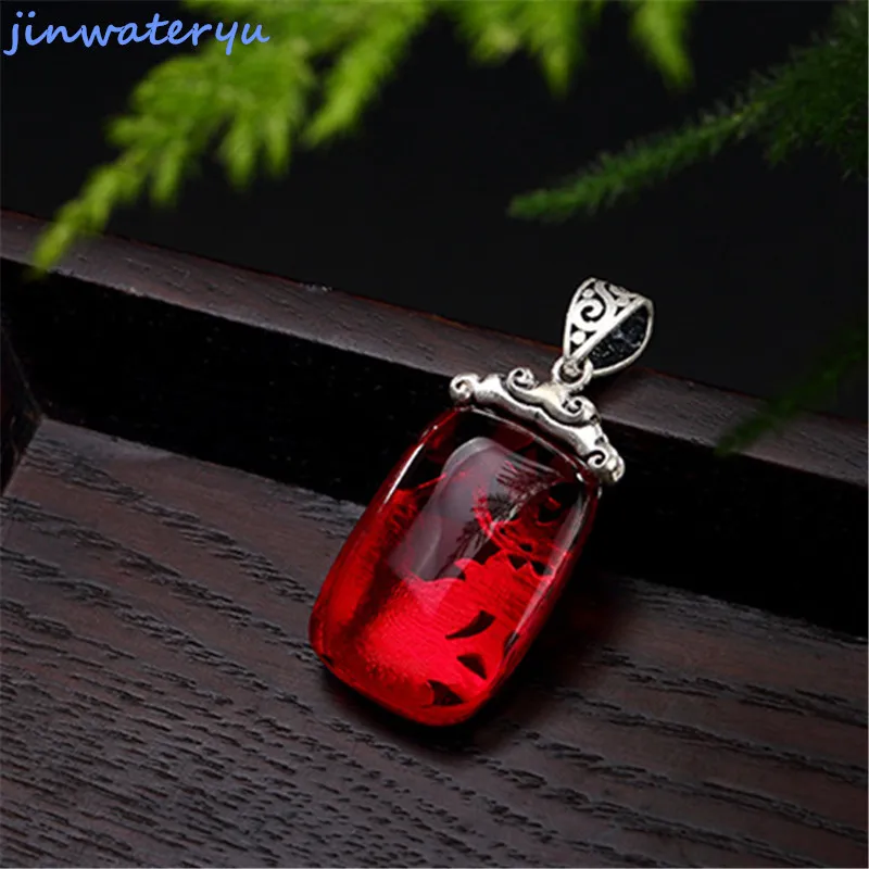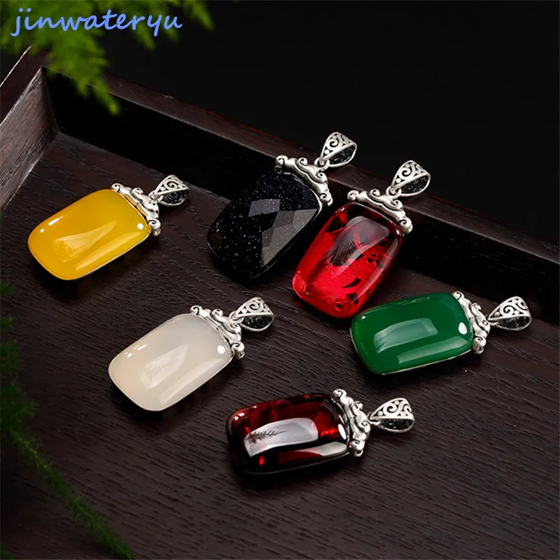 jinwateryu 2019 new model Fashion Jewelry blue chalcedony heart Pendants 925 sterling Silver blue s