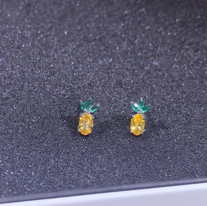 Real Pineapple Style Women Earrings 5A Zircon CZ 925 Sterling Silver Party Wedding Stud Earrings Fo