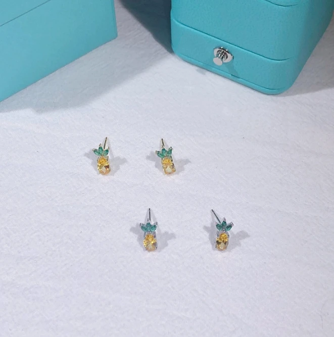 Best Seller Real Pineapple Style Women Earrings 5A Zircon CZ 925 Sterling Silver Party Wedding Stud Earrings Fo