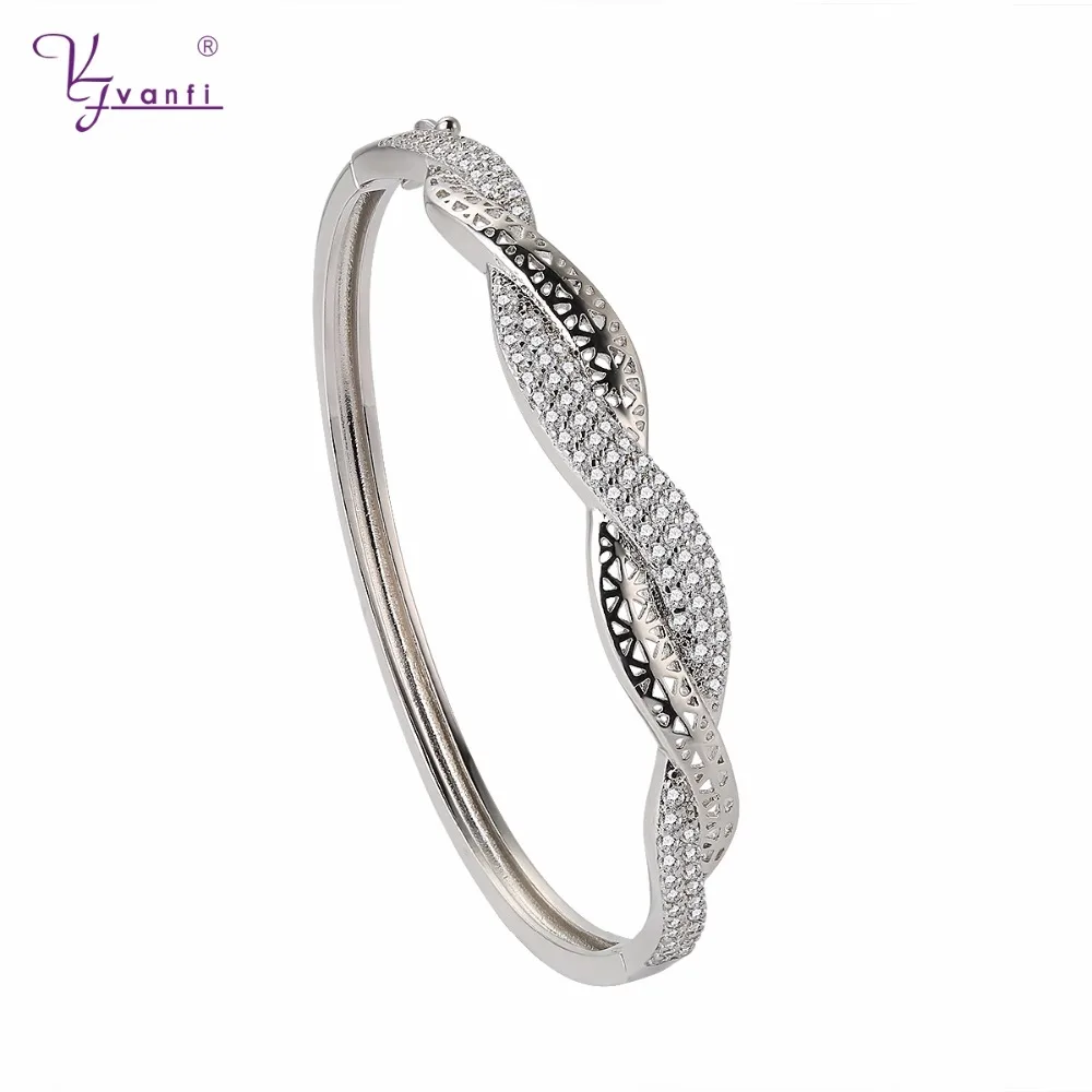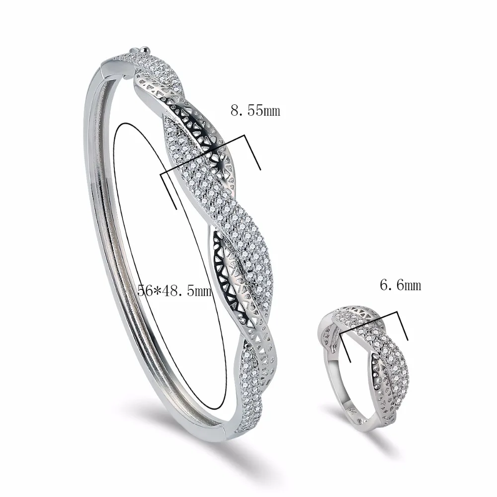 Dubai White Gold Bangles &Rings Copper Latest Style Jewelry Sets For Woman White AA Zircon With Whi