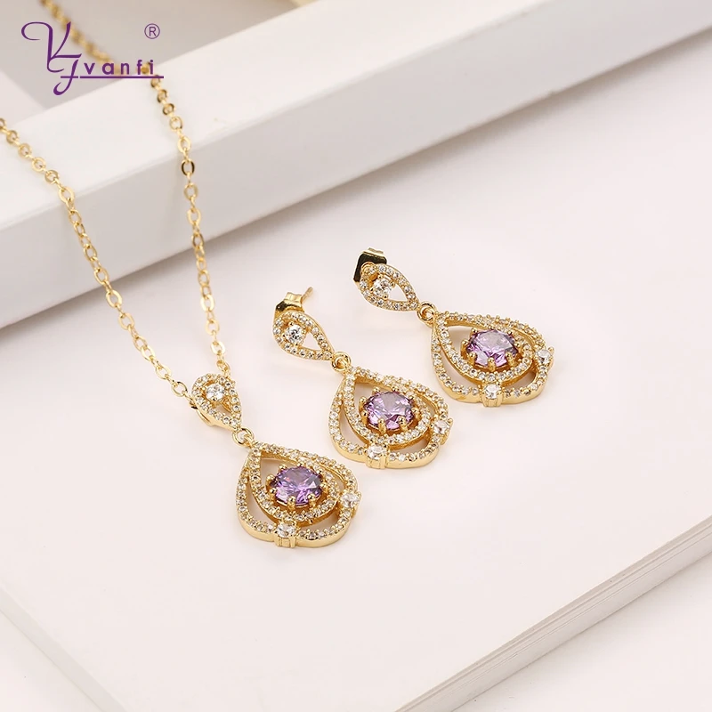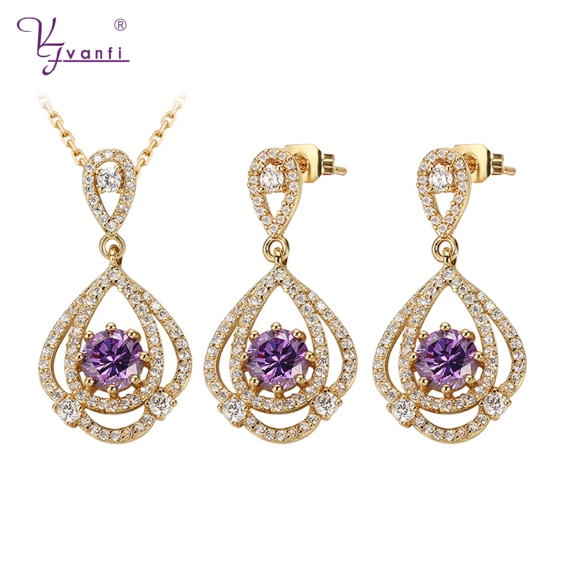 New Purple Zircon Design Beautiful Fashion Jewelry Sets purple Zircon Necklace Earring For Women Gi
