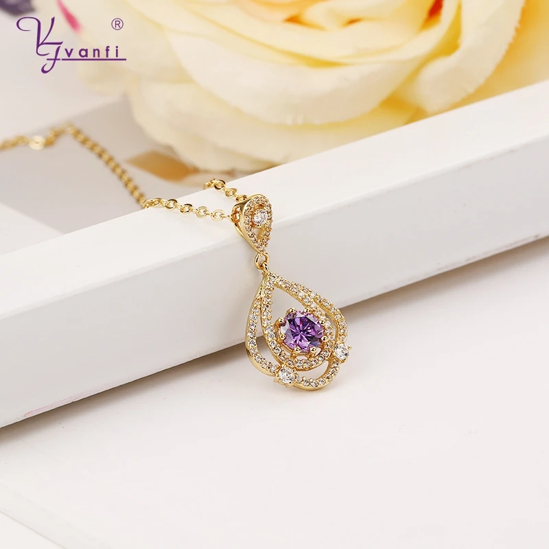Review Top New Purple Zircon Design Beautiful Fashion Jewelry Sets purple Zircon Necklace Earring For Women Gi